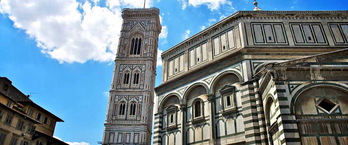La cara de presentación de Florencia es la Piazza del Duomo. Las reconocidas edificaciones que allí se encuentran, como la Catedral de Florencia, el Campanario de Giotto y el Baptisterio de San Giovanni, son de los principales puntos de interés turístico de la capital de la Toscana.