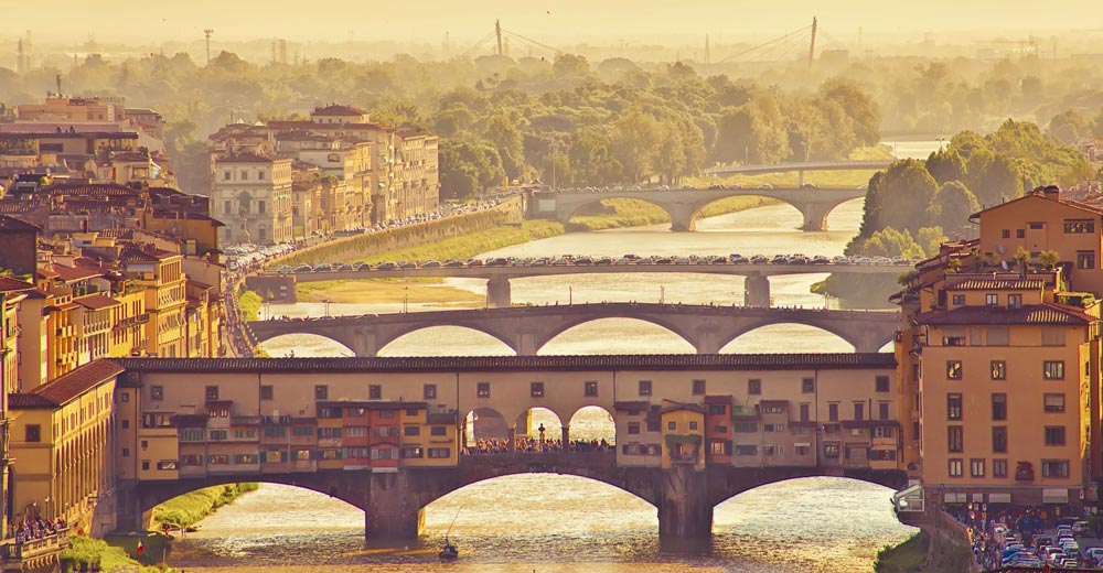 La ciudad de Florencia está dividida en dos por el río Arno que atraviesa la capital con una tendencia que va de noroeste a sureste. El cruce de un lado a otro de la ciudad de Florencia es posible gracias a la presencia de numerosos puentes, el más antiguo de los cuales data de principios del siglo XIV.
